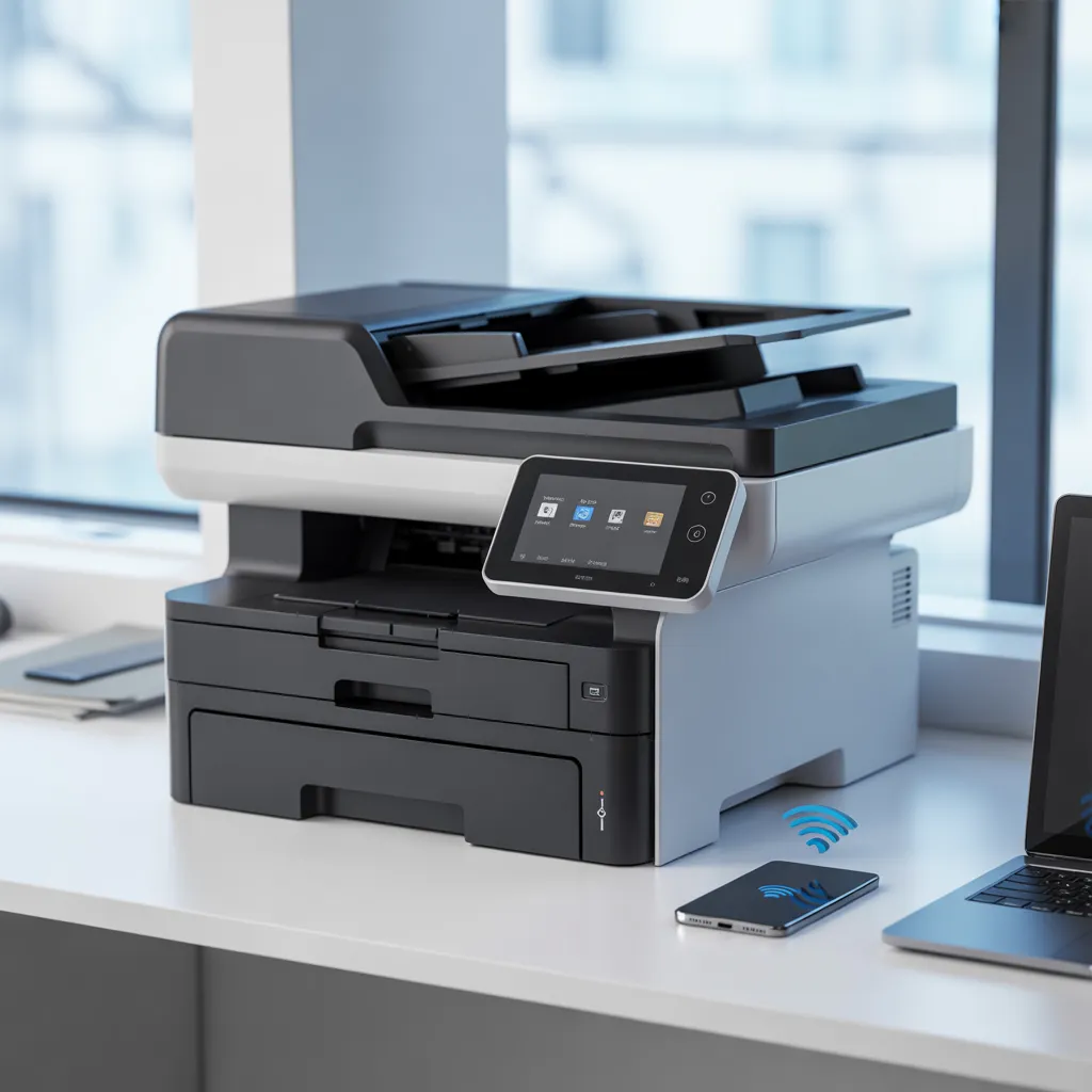 All-in-one printers with scanning and copying functions, supporting Wi-Fi and mobile connectivity.